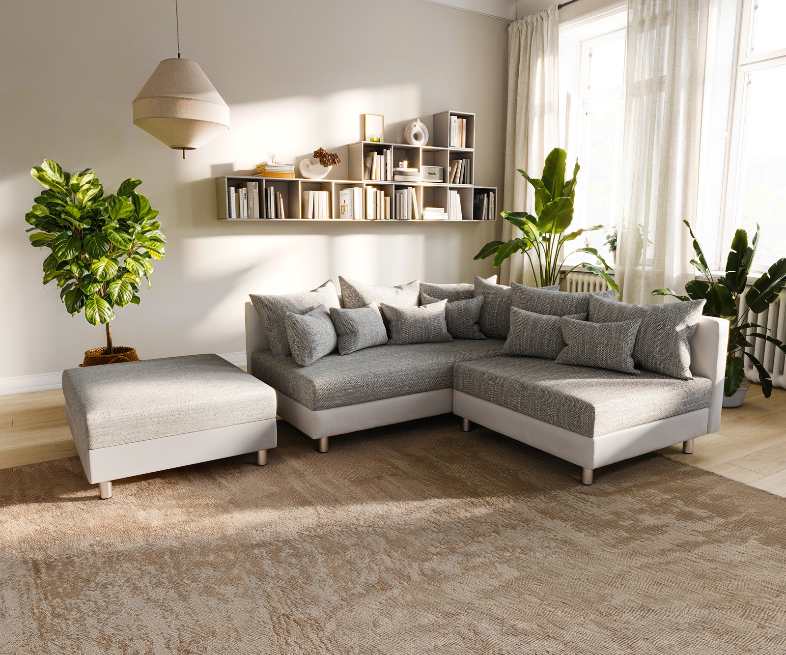 Sarokkanapé Clovis fehér világosszürke moduláris kanapé puff rekamié bal oldali