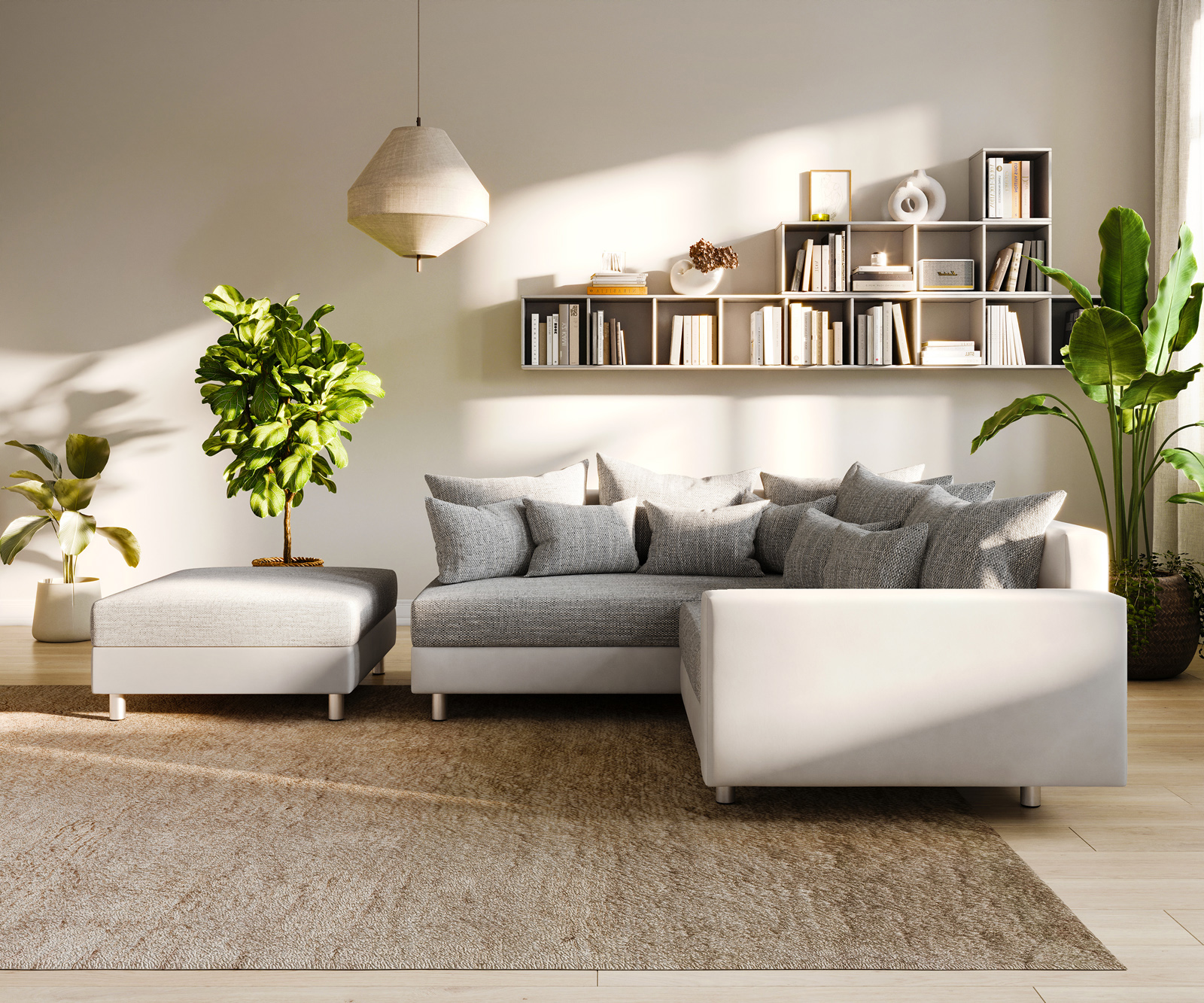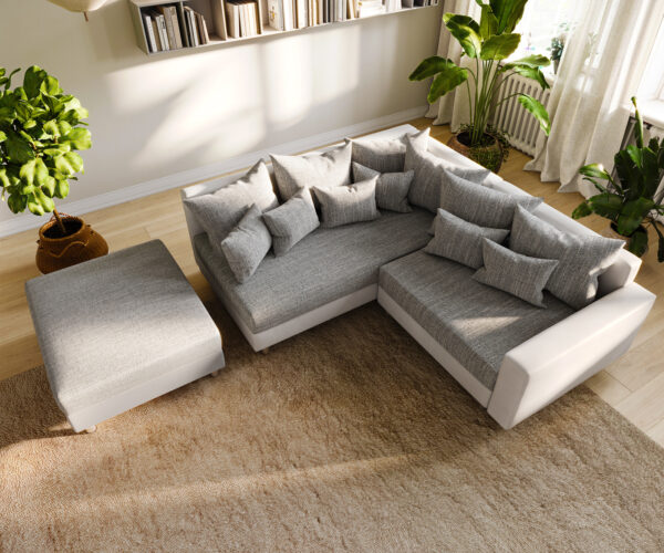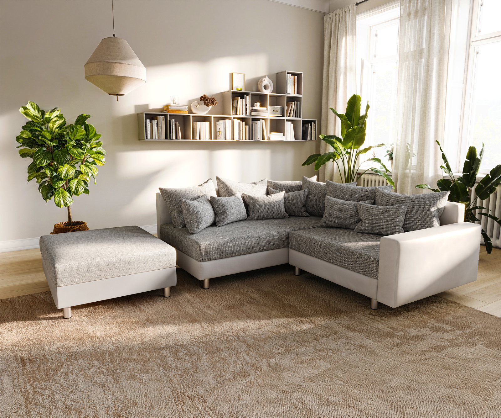 A Clovis sarokkanapé világosszürke-fehér színben tetszés szerint bővíthető –