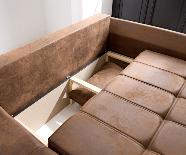 A sarokkanapé bőséges helyet kínál neked és barátaidnak. A rekamié választhatóan jobb vagy bal oldalon szerelhető, és meghív a lábak felpolcolására. Néhány mozdulattal ebből a kanapéból kényelmes éjszakai fekhelyet varázsolhatsz, a párnákat vagy takarókat pedig az integrált ágyneműtartóban tárolhatod.