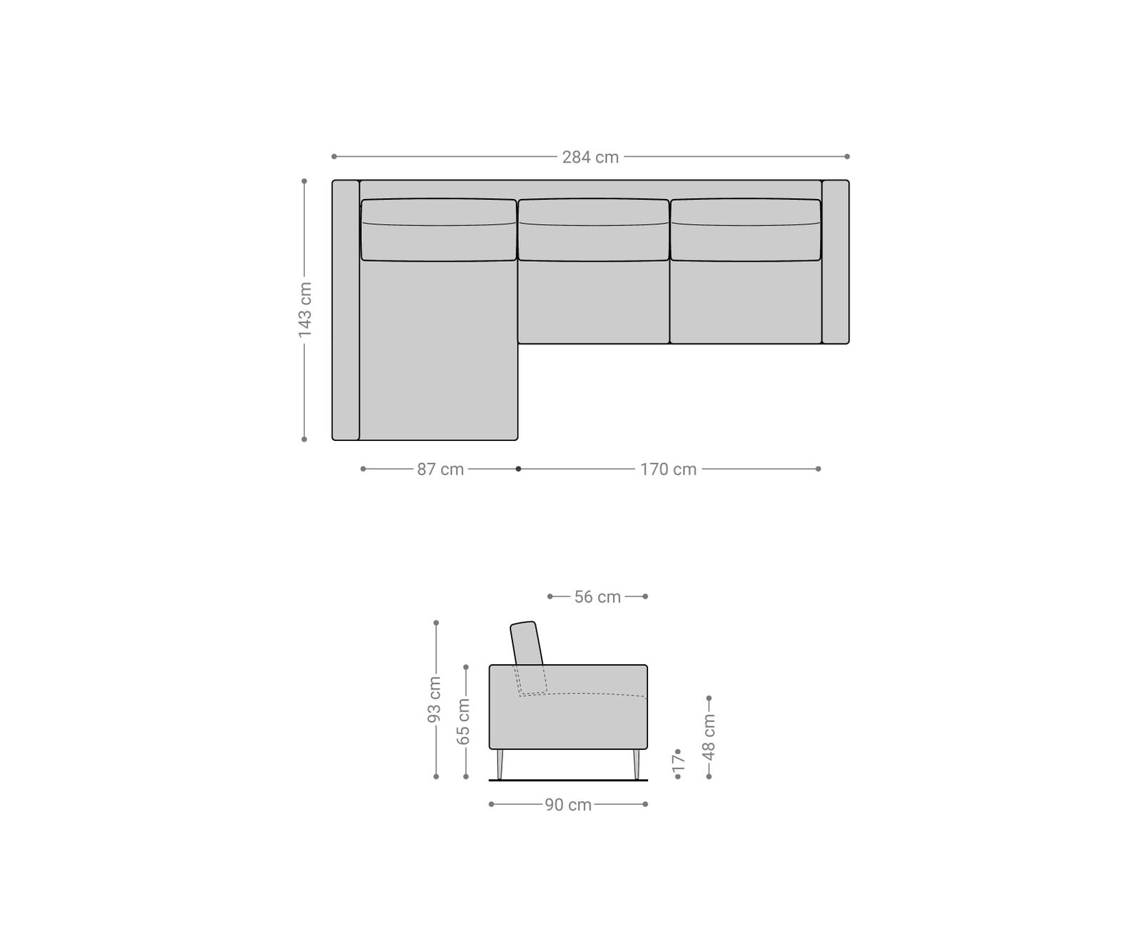 - Recamié méretei kb.: Sz87 x Mé143 x M93 cm