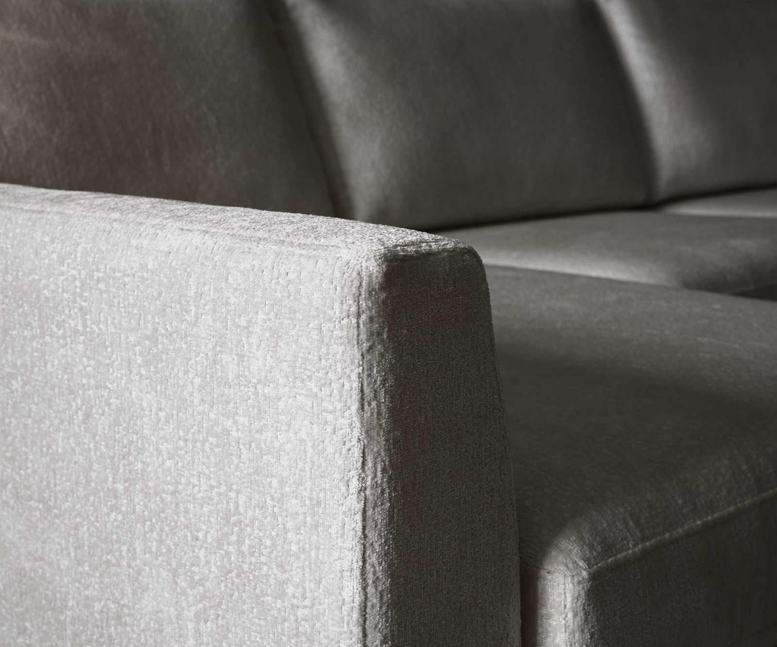 A végigfutó háttámla és a nagy térfogatú, levehető párnák, amelyeket igény szerint szabadon el lehet rendezni, több helyet biztosítanak a kényelmes üléshez az L alakú kanapén. Különösen magas komfortérzetet nyújt a beépített, kiváló minőségű Nosag rugós alátámasztás és a hideghab töltetű párnázat.