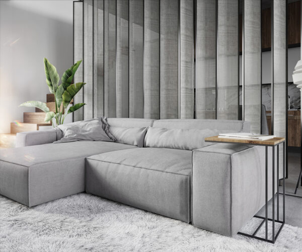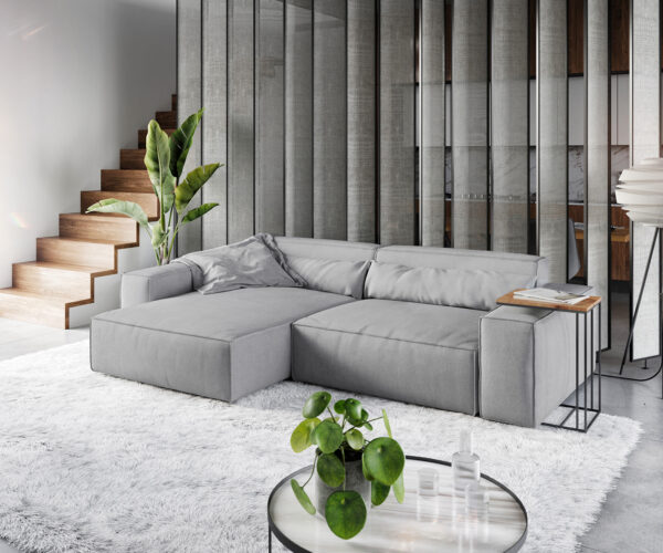 Igazi különlegesség – a Sirpio sarokkanapé extra mély ülőfelülettel, elegáns szürke színben