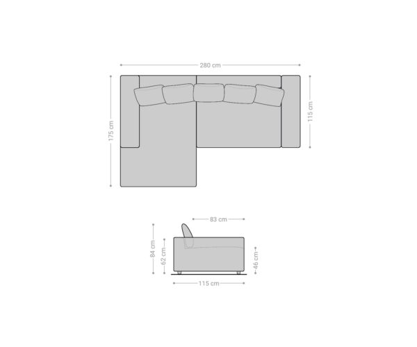 - Megjegyzés: részben összeszerelt, az egyes elemeket össze kell szerelni; az ottomán bal oldalon van szerelve