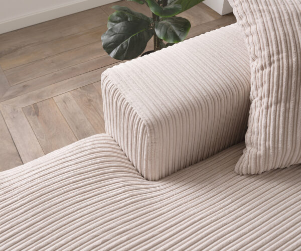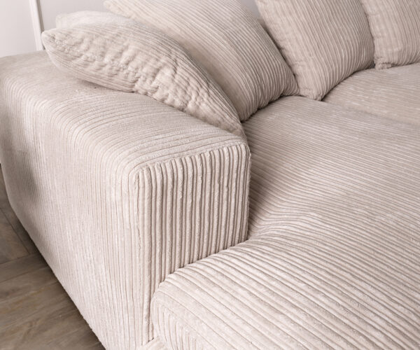 Megjelenésében a DELIFE kiváló minőségű bútorát elsősorban modern, minimalista stílusa teszi vonzóvá. A designt főként a nagyméretű, kubikus formák visszafogott megjelenése határozza meg. A bézs szín természetes hatású árnyalatával gazdagítja a megjelenést. Így az sarokkanapé sokoldalúan kombinálható.