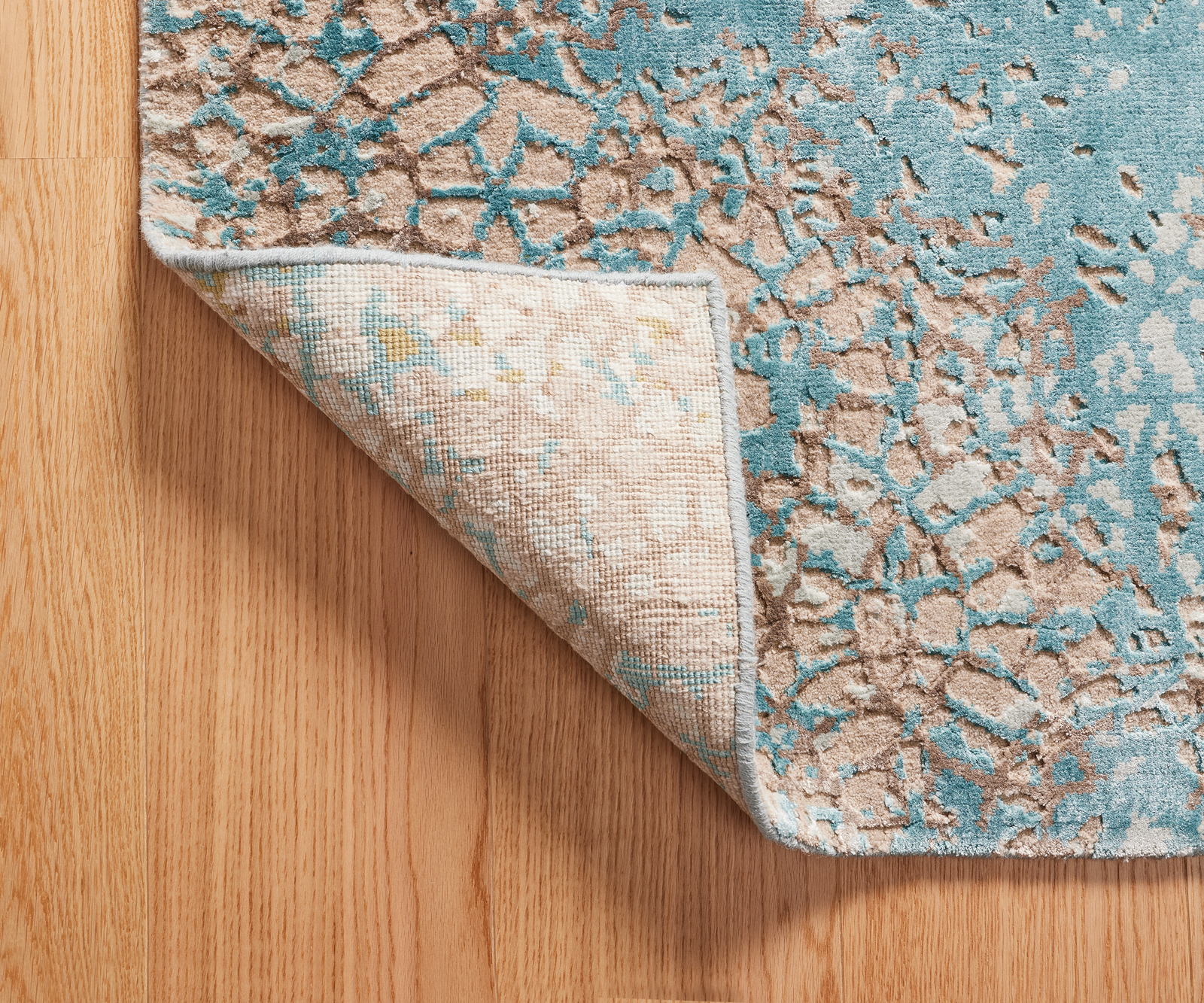 Ez a szőnyeg kézzel lett csomózva. Ez azt jelenti, hogy minden egyes csomót kézzel, gépek vagy segédeszközök nélkül készítettek el. Egy ilyen szőnyeg elkészítési ideje ezért több hónapot vesz igénybe. A kézzel csomózott szőnyeget általában egyenetlen széléről vagy szőnyegalakjáról, valamint apró szabálytalanságokról lehet felismerni a hátoldalon. Ezek a kis részletek adják a szőnyeg egyedi karakterét, amely valódi egyediséggé teszi. Továbbá fontos megemlíteni, hogy ennek a kézzel csomózott szőnyegnek a gyártásához kizárólag természetes anyagokat használtak a fenntarthatóság garantálása érdekében.