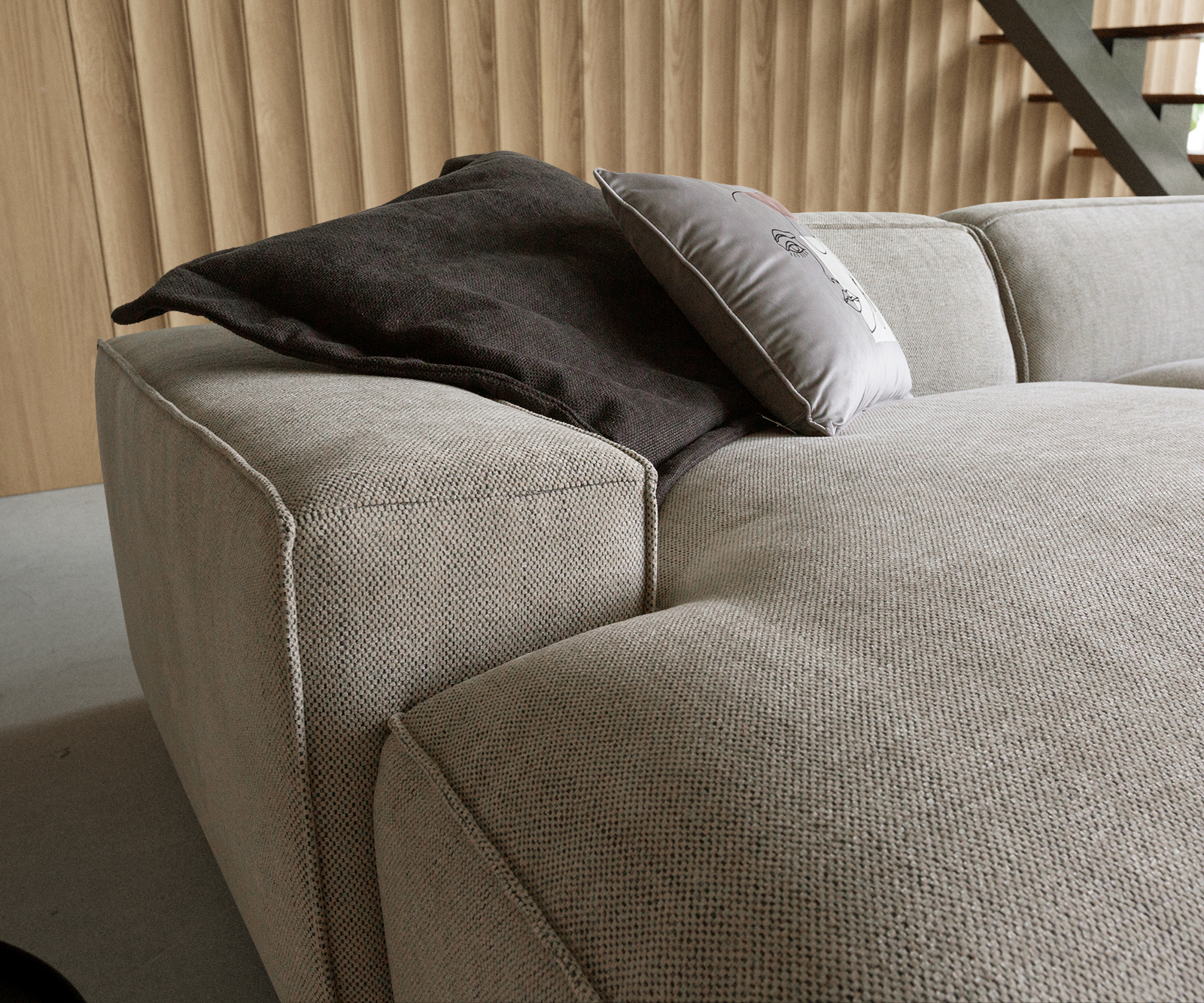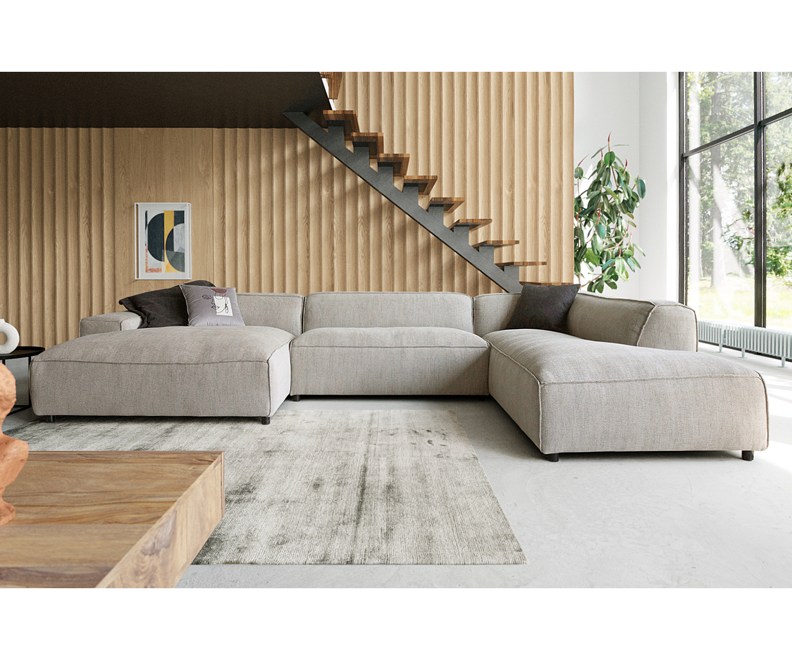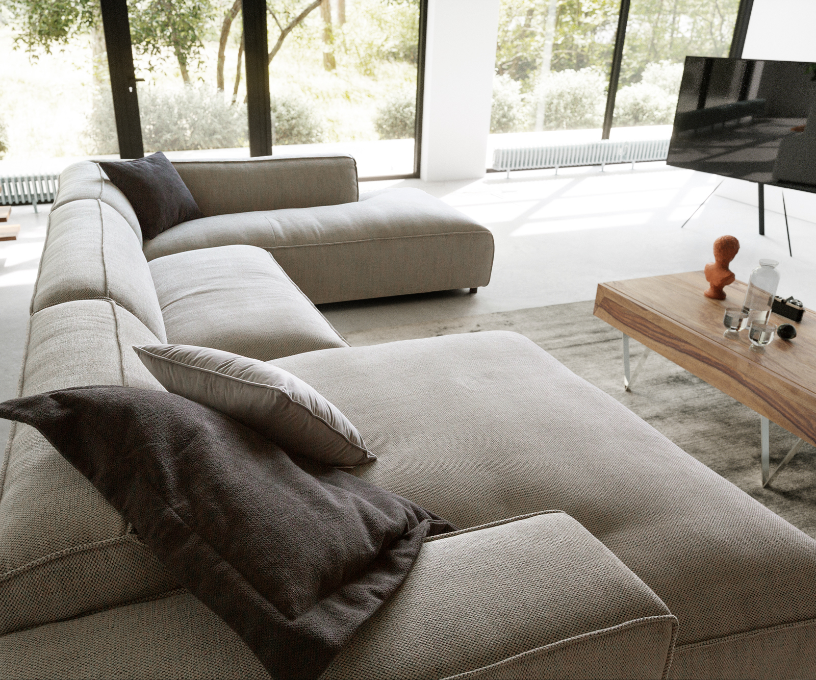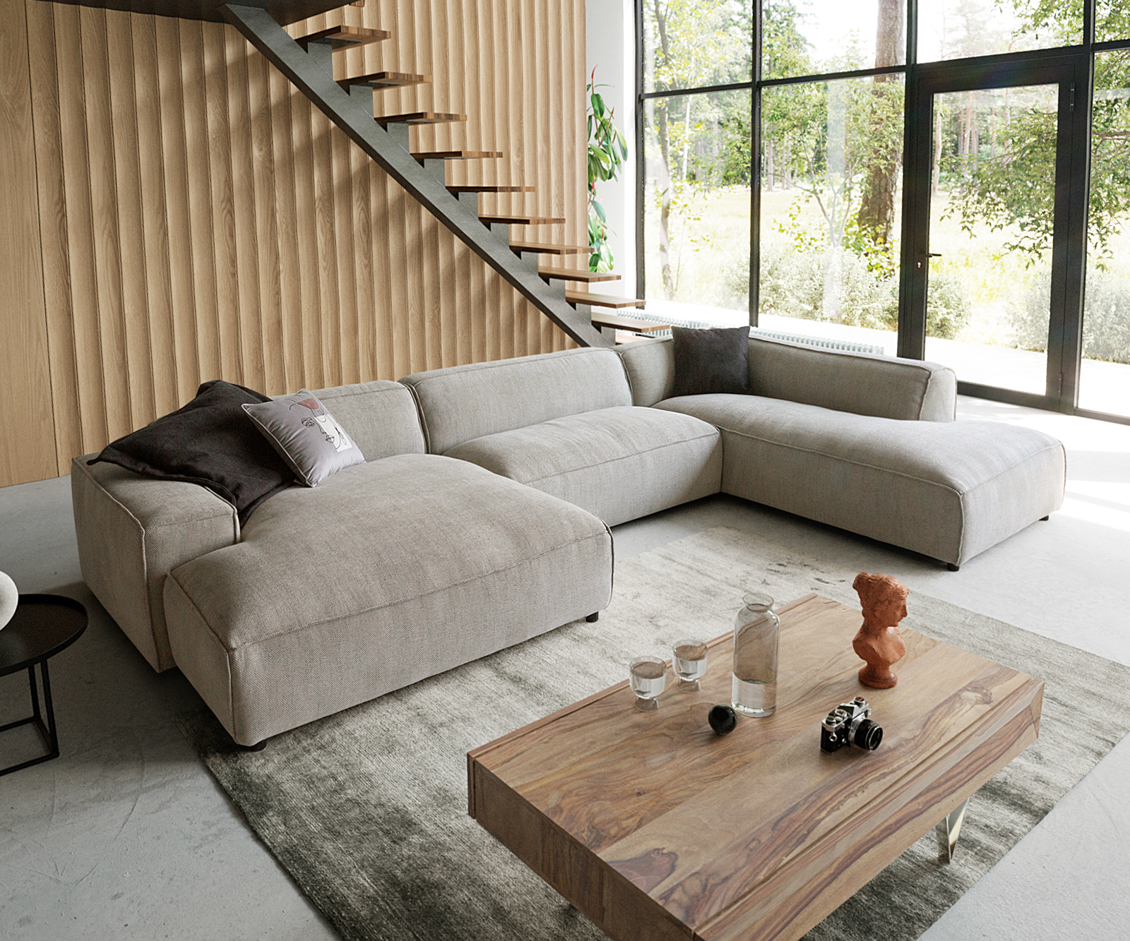 Přívětivý design – pohovka Tenso s pravým dlouhým křeslem