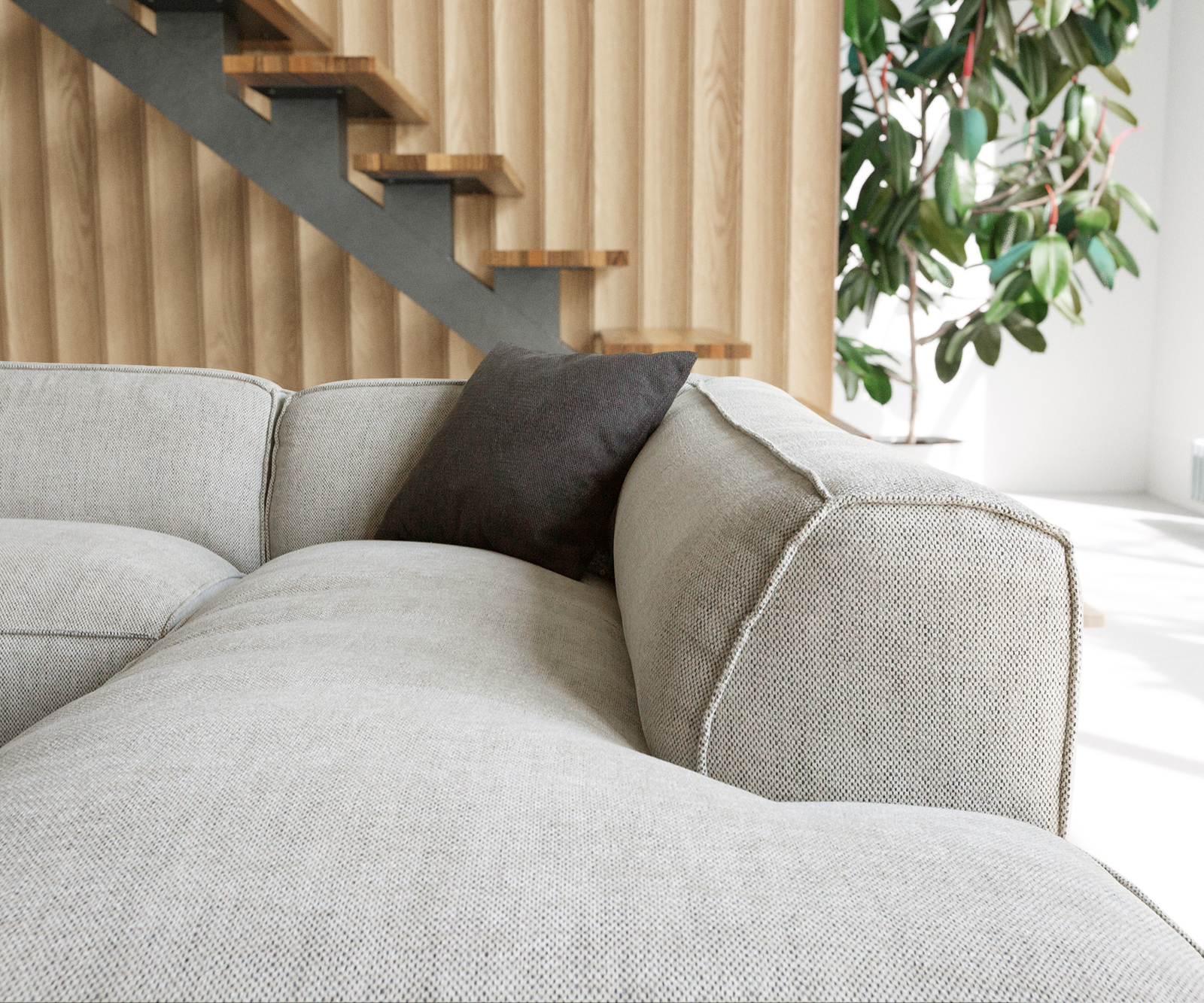 - Struktura čalounění sedáku a opěradla: vysoce kvalitní pěna a struktura polštářů se směsí peří a silikonových vláken