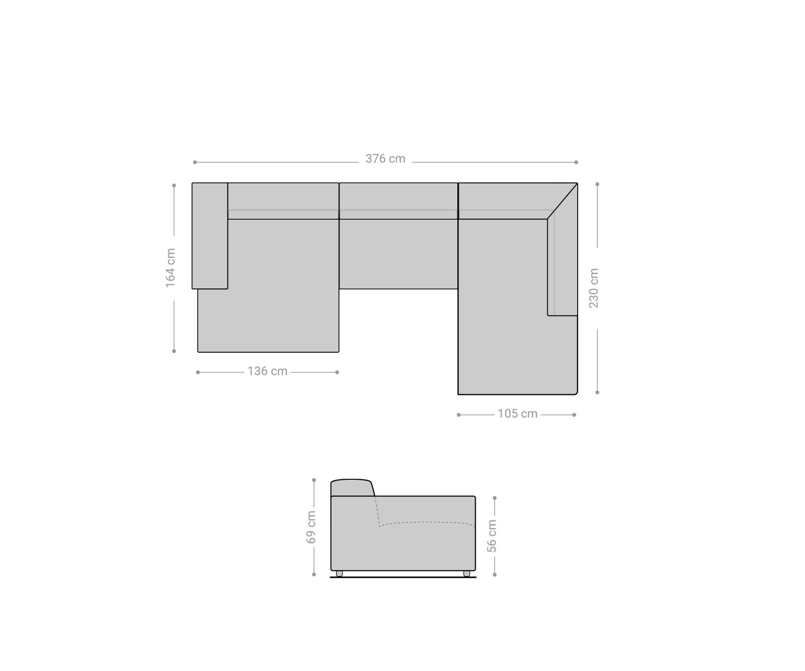 - Přibližné rozměry: Š376 x D230 x V69 cm