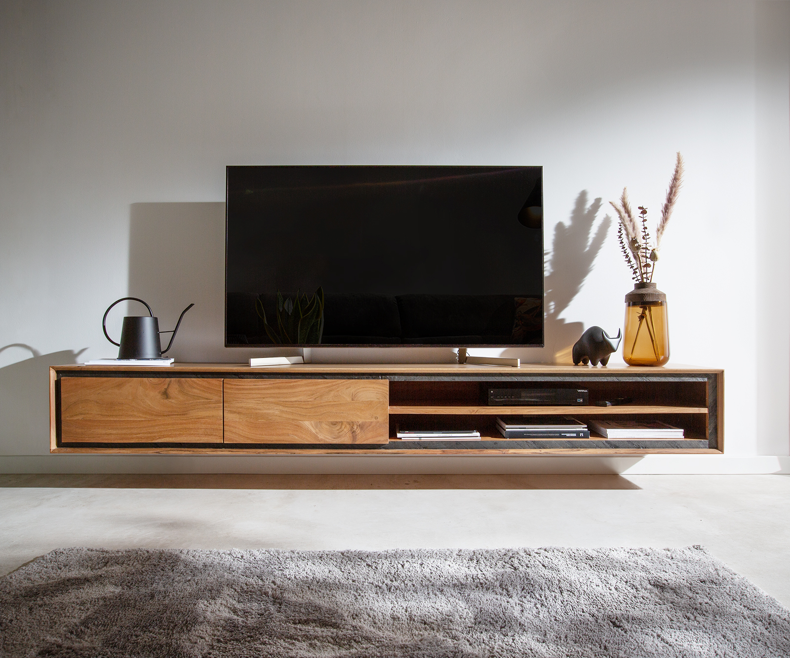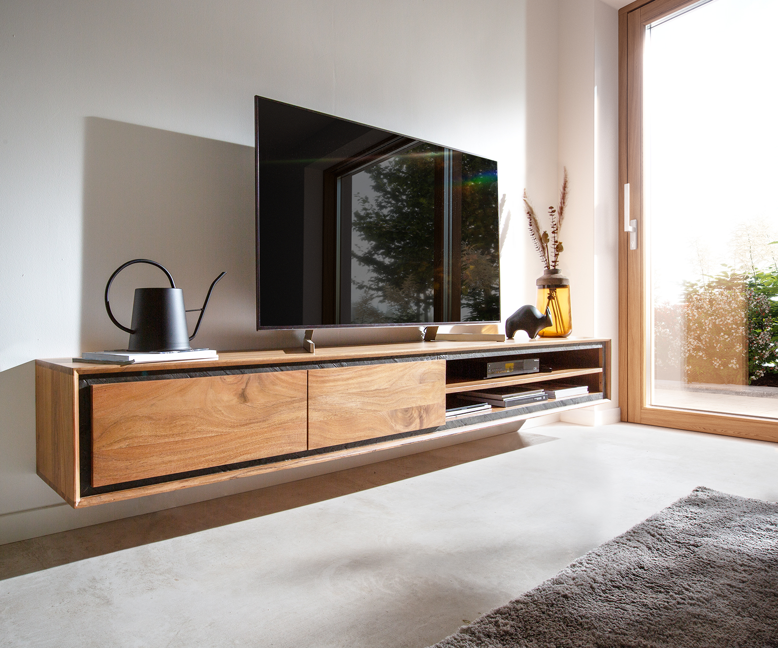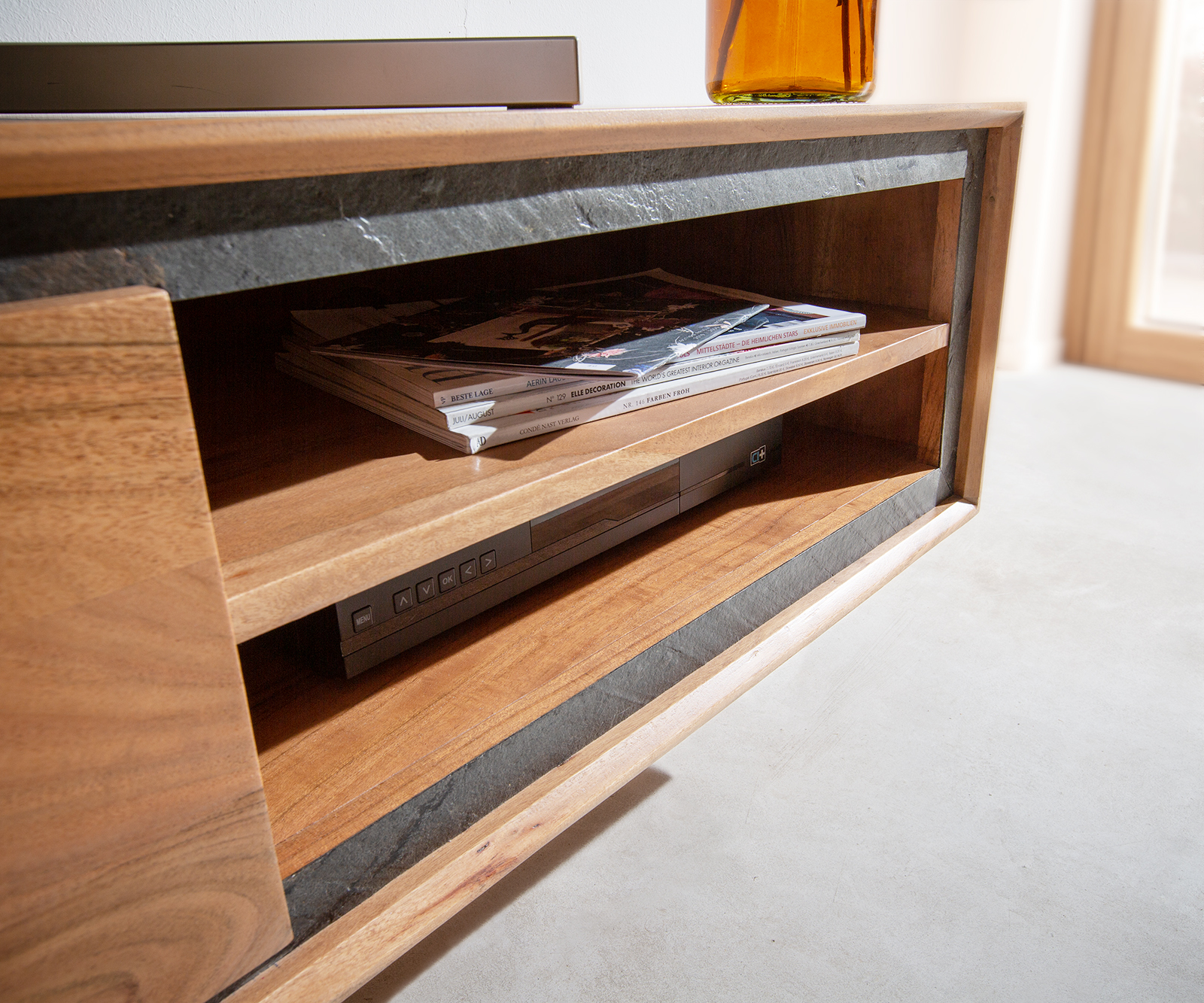 Nízká deska Stonegrace přesvědčí svými rozměry, promyšlenou funkčností a výjimečným designem v dokonalém zpracování. Korpus je vyroben z kvalitního akátového dřeva a zvýrazněn rámem z tmavé kamenné dýhy. Za 2 dvířky nabízí lowboard dostatek prostoru pro uložení vašich osobních věcí. Do 2 přihrádek můžete uložit zábavní elektroniku i hry apod. Horní přihrádka je vybavena průchodkou na kabely. Ta vám umožní vést všechny nevzhledné kabely téměř neviditelně.