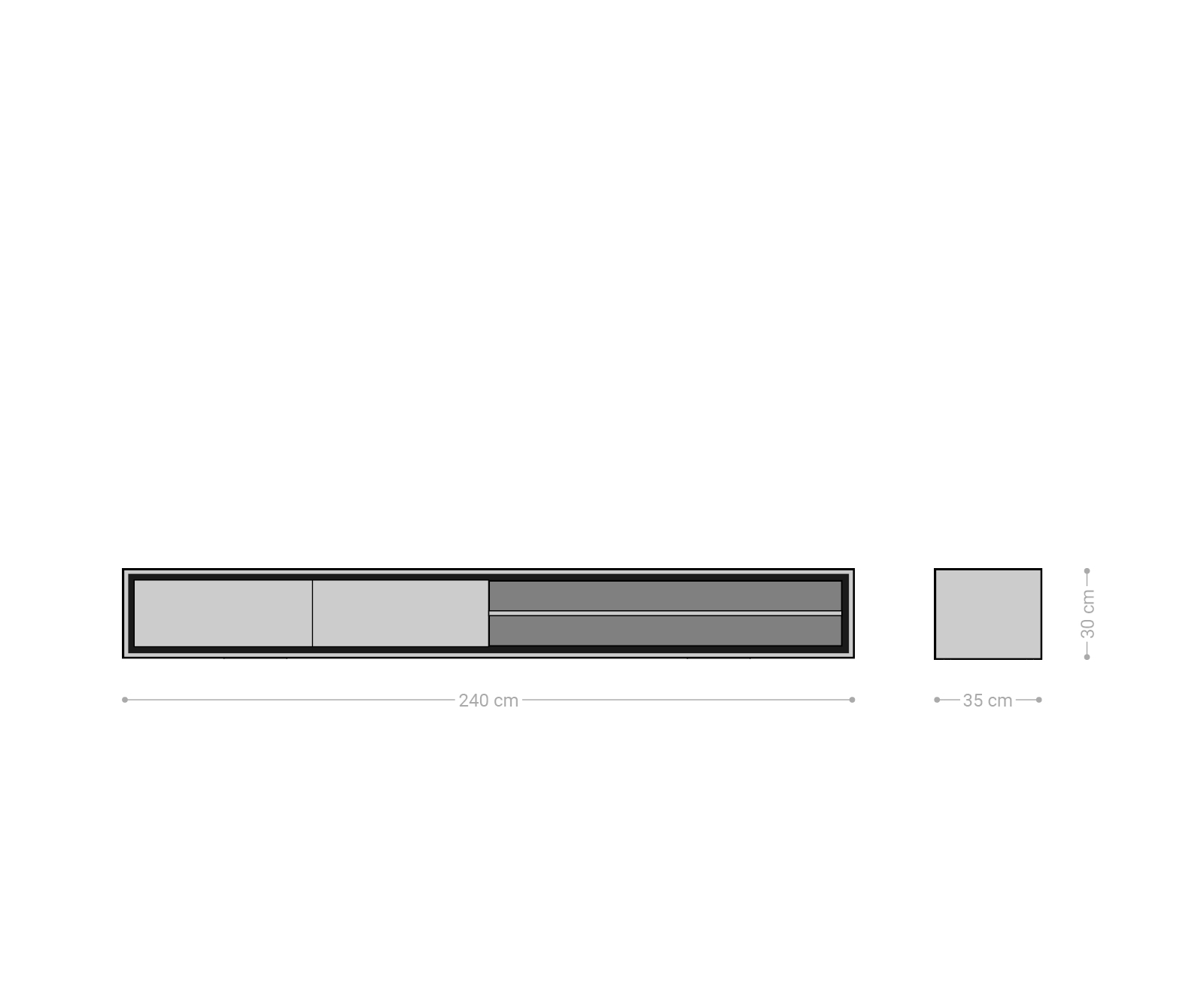 - Přibližné rozměry: B240 x D35 x V30 cm