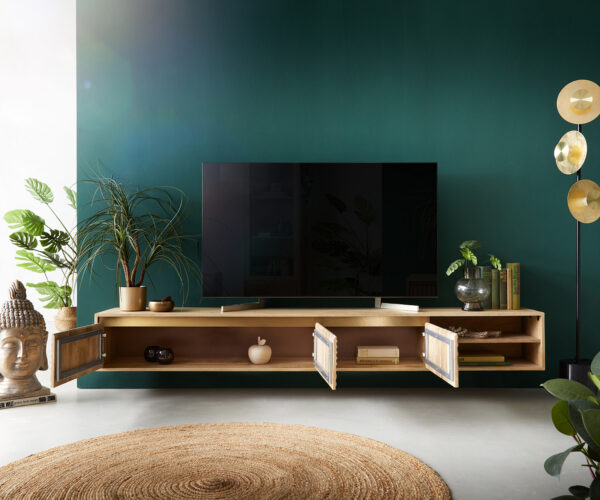 - Megjegyzés: természetes termékről van szó, amely természetes eltéréseknek és optikai változásoknak lehet kitéve; csomólyukak és egyéb természetes anyaghibák vagy szabálytalanságok is előfordulhatnak; a TV szekrény szerelvények mellékelve vannak; a fali rögzítő anyagok nem részei a csomagnak