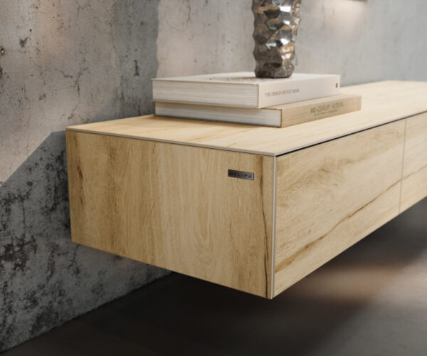 Valódi Laminam® kerámia Olaszországból, amely szépségéről és ellenállóságáról világszerte ismert, a CUOR TV szekrényen finom fa árnyalatokban ragyog, amelyek értékes tölgyfára emlékeztetnek, és a híres velencei lagúna homokjának egyedi színeiből merítenek ihletet. A lenyűgöző színjáték, finom, folyékony erezetével CUOR-nak azt a meleg és hívogató karaktert adja, amely ezt az ikonikus designt egyedivé teszi. Még lenyűgözőbb hatás érdekében a bútordarab stabil tartóval közvetlenül a falra szerelhető. A lebegő megjelenés könnyedséget és különösen harmonikus megjelenést kölcsönöz.
