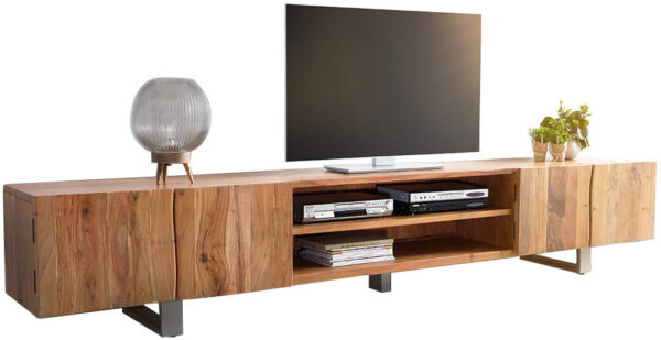 TV szekrény Live-Edge 200 cm akác természetes 4 ajtós 2 rekeszes