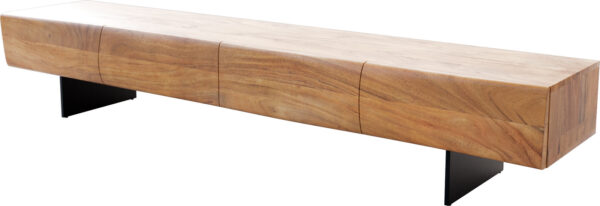 Válassz stílusos természetességet a New Live-Edge sorozat TV szekrényével. A művészien kialakított előlap, melyen finoman ívelt természetes él található, valamint a masszív tölgyfa jellegzetes erezete meleg és hívogató hangulatot kölcsönöz otthonodnak. A négy ajtó mögött elegendő tárolóhely áll rendelkezésre, hogy mindent rendezetten elhelyezz.