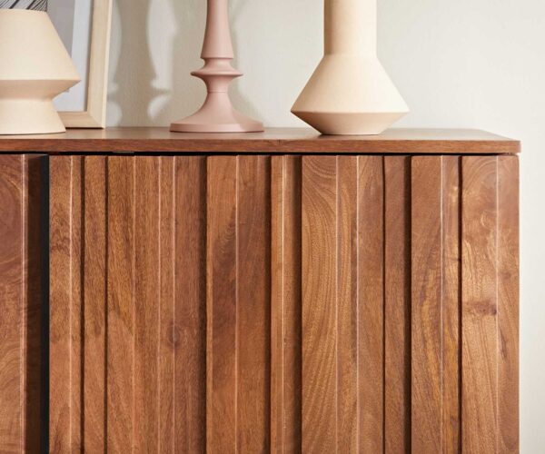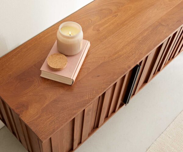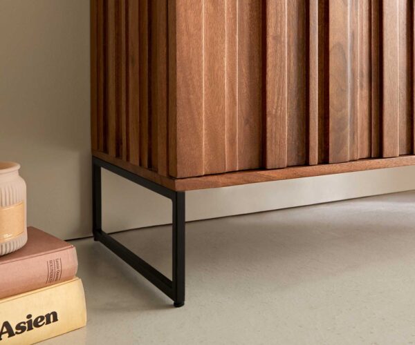 Stílusos, funkcionális és egy csipetnyi eleganciával – a Sivela TV szekrény tökéletesen illeszkedik a lakóteredbe. A földszínű barna mangófa meleg alaphangulatot teremt, míg a simán lakkozott és lezárt felület tartósságot és nemes megjelenést biztosít. A fekete porfestett fém lábak ügyesen egészítik ki a dizájnt, izgalmas kontrasztot alkotva a természetes fával.
