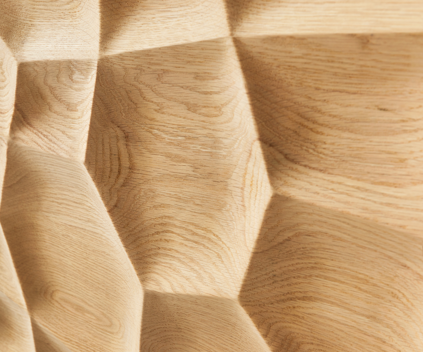 A Solu TV szekrény fenntartható tölgyfából készült, és páratlan designjával, tökéletes kidolgozásával lenyűgöz. A finom levelek formás sejtszerkezetéből inspirálódva a Solu egyedi 3D előlapja különleges mélységű, kidolgozott, kiemelkedő domborműként ragyog. Ezt a különösen erős anyag kiválasztásával érik el, amelyet precíz és bonyolult marással dolgoznak fel az egész előlapon. Ennek eredményeként egy lenyűgöző összkép jön létre, amely zavaró megszakítások nélkül, két-két ajtóval és fiókkal rendelkezik, mivel ezek külön az egyedi 3D mintához igazítottak.