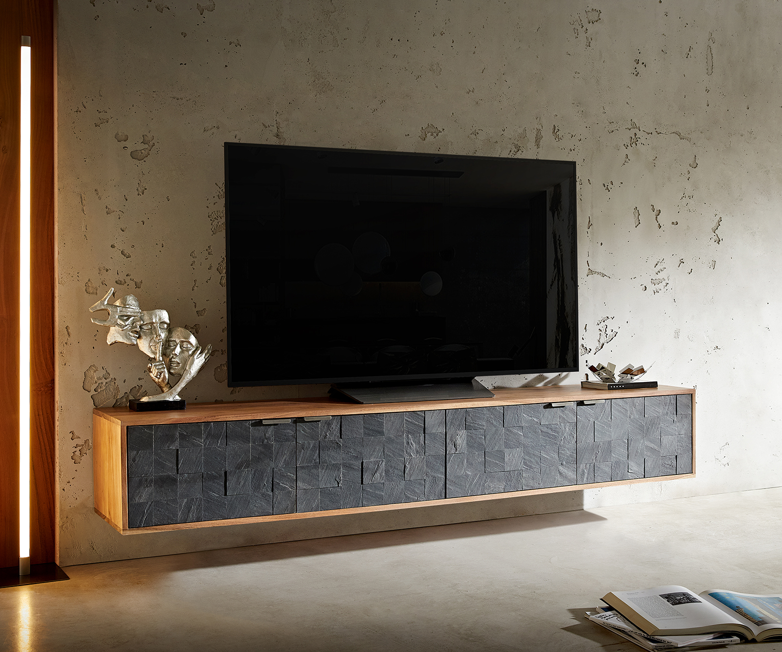 - Megjegyzés: természetes termékről van szó, amely természetes ingadozásoknak és optikai változásoknak lehet kitéve; csomólyukak és egyéb anyagban előforduló zárványok vagy szabálytalanságok szintén természetesek; hátoldalon kábelátvezető található; a TV szekrény szereléséhez szükséges szerelvények mellékelve vannak; falra szereléshez szükséges anyagok nem tartozékok; az elegáns kőfurnéros előlapok egyedi 3D mozaik megjelenésének elkészítése rendkívül időigényes és kizárólag kézi munkával végezhető el. Sok türelemre, még több tapasztalatra és az akarat meglétére van szükség, hogy minden mozaik előlap egy megismételhetetlen műalkotássá váljon.
