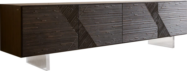 TV szekrény Tereos 220 cm sötétbarna kőris 3D hatás 4 ajtós kerek fém láb fekete
