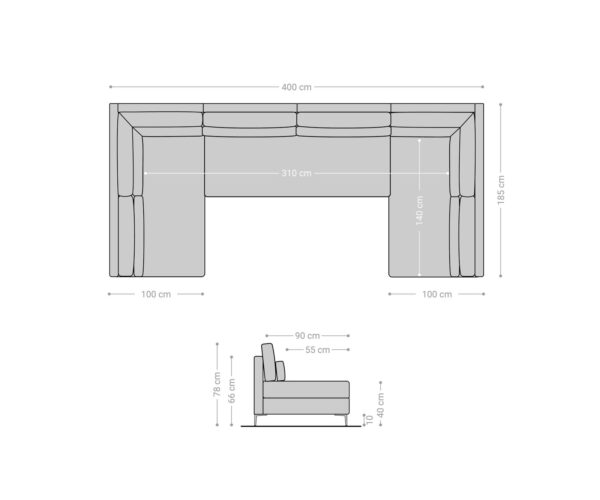- Méretek kb.: Sz400 x Mé185 x M66 cm