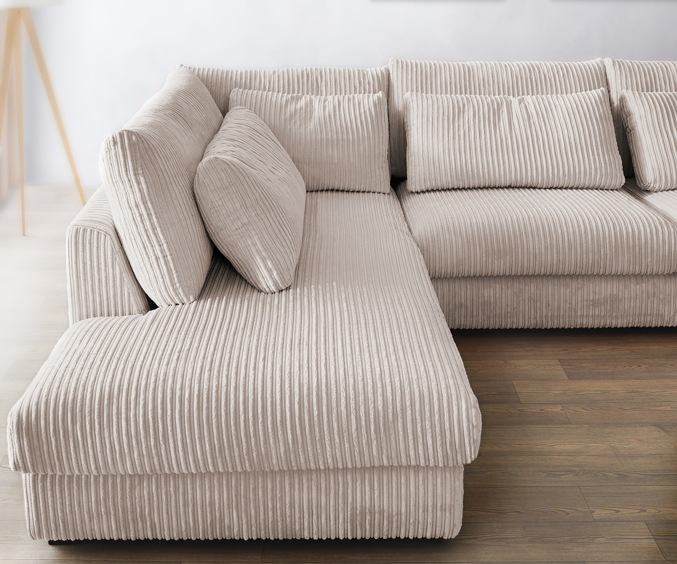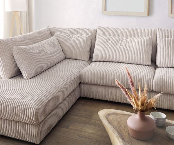 „U alakú kanapé Isla 430×225 kordbársony bézs bal oldali rekamié”