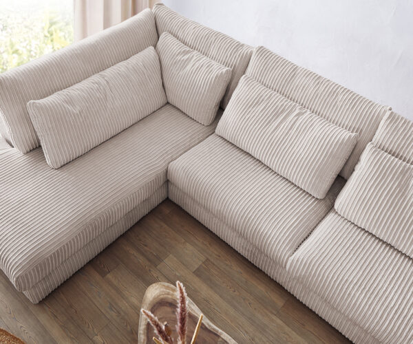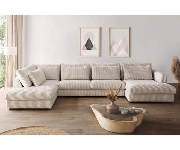 "U alakú kanapé Isla 430x225 kordbársony bézs bal oldali rekamié"