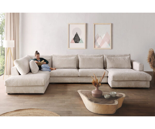 • Tágas ülőfelületű „Cosy Look” stílusú „U” alakú kanapé