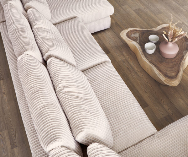 Az szép XXL kanapé Isla modern és rendkívül kényelmes bútordarabot varázsol nappalidba. Nagyméretű ülő- és fekvőfelületein elegendő helyet kínál neked és vendégeidnek. A stílusos kanapé egyszerű, időtlen, letisztult formáival nyűgöz le. A design egyik különlegessége a puha kordbársony huzat, amely diszkrét bézs színével egyedi és elegáns bájt kölcsönöz a kanapénak.