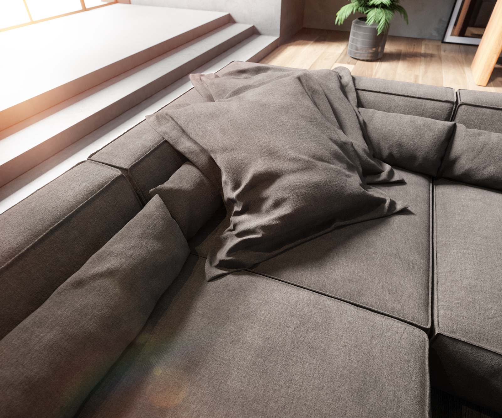 A nappali központja – a Sirpio „U” alakú kanapé extra mély ülőfelülettel izgalmas khaki-barna színben