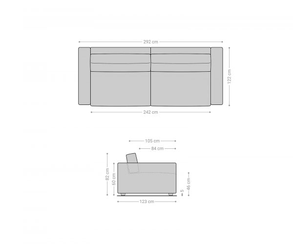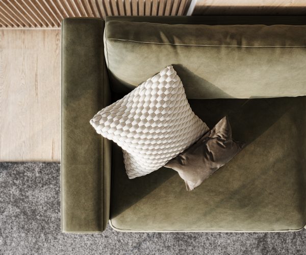 - Čalounění sedáku: volné sedáky z vysoce kvalitní pěny potažené polštářovou strukturou se směsí peří a silikonových vláken.