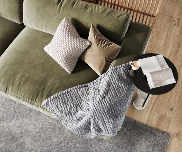 Velká pohovka s mimořádně pohodlným vlnovým pružením má vynikající zpracování do nejmenšího detailu. Velkorysý čalouněný nábytek zdobí po celém obvodu olivový sametový potah, který svým obzvlášť měkkým povrchem vytváří oázu klidu, jež vybízí k příjemnému posezení a příjemnému odpočinku od všedních dnů. Obzvlášť pohodlné čalounění se vyznačuje velmi měkkým povrchem, který se přizpůsobí tvaru vašeho těla a umožní vám sedět jako na obláčku.