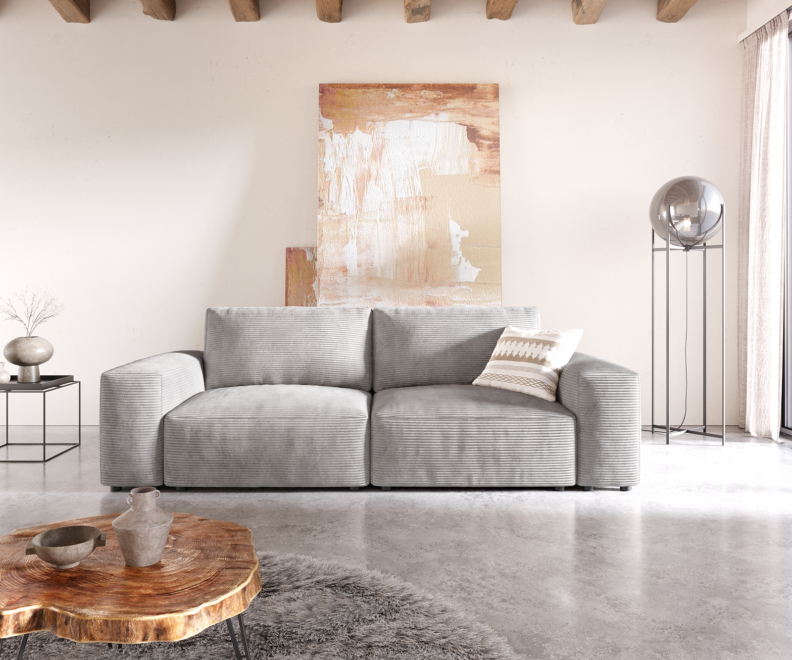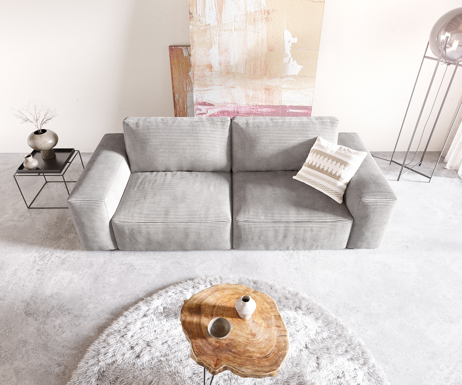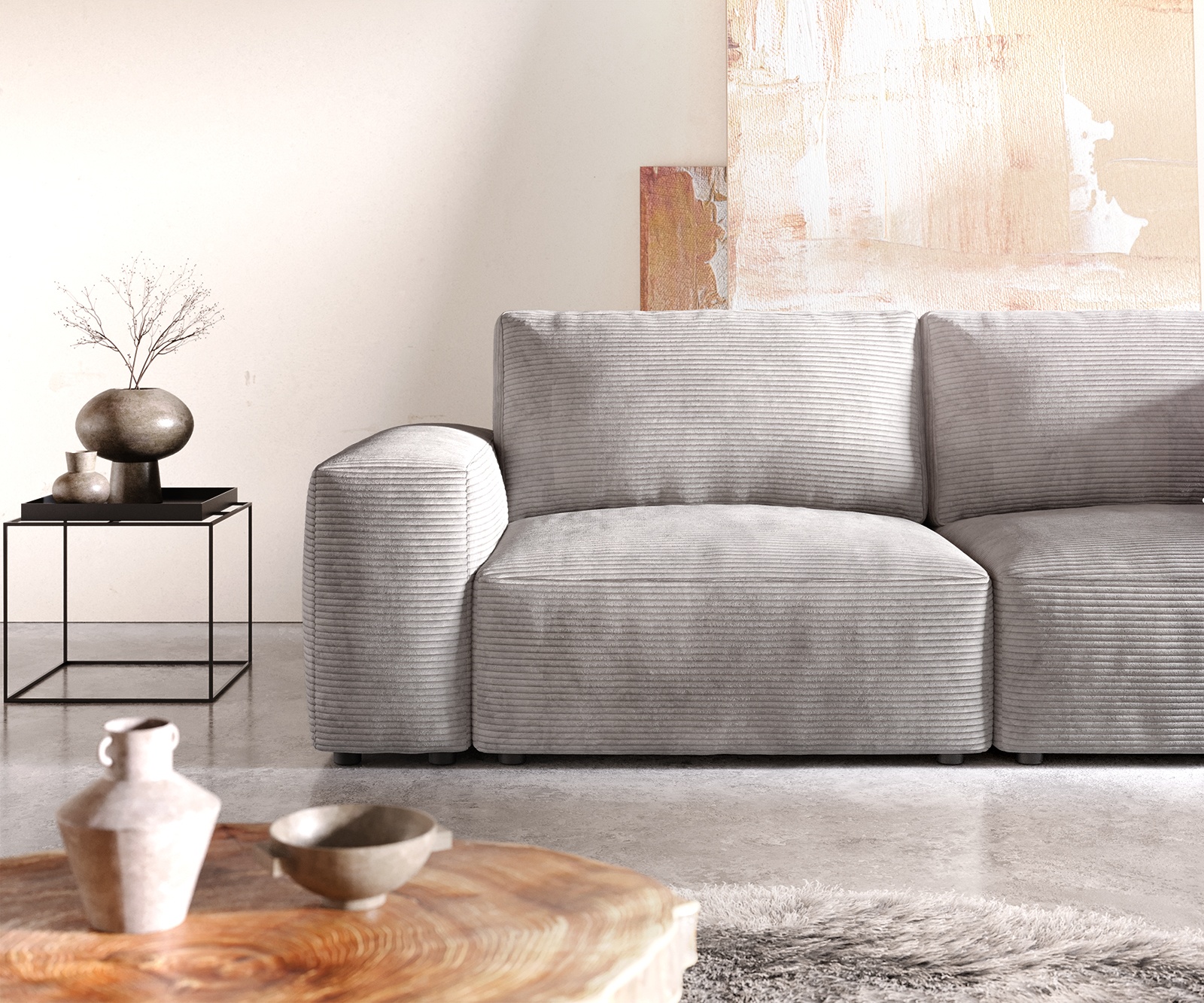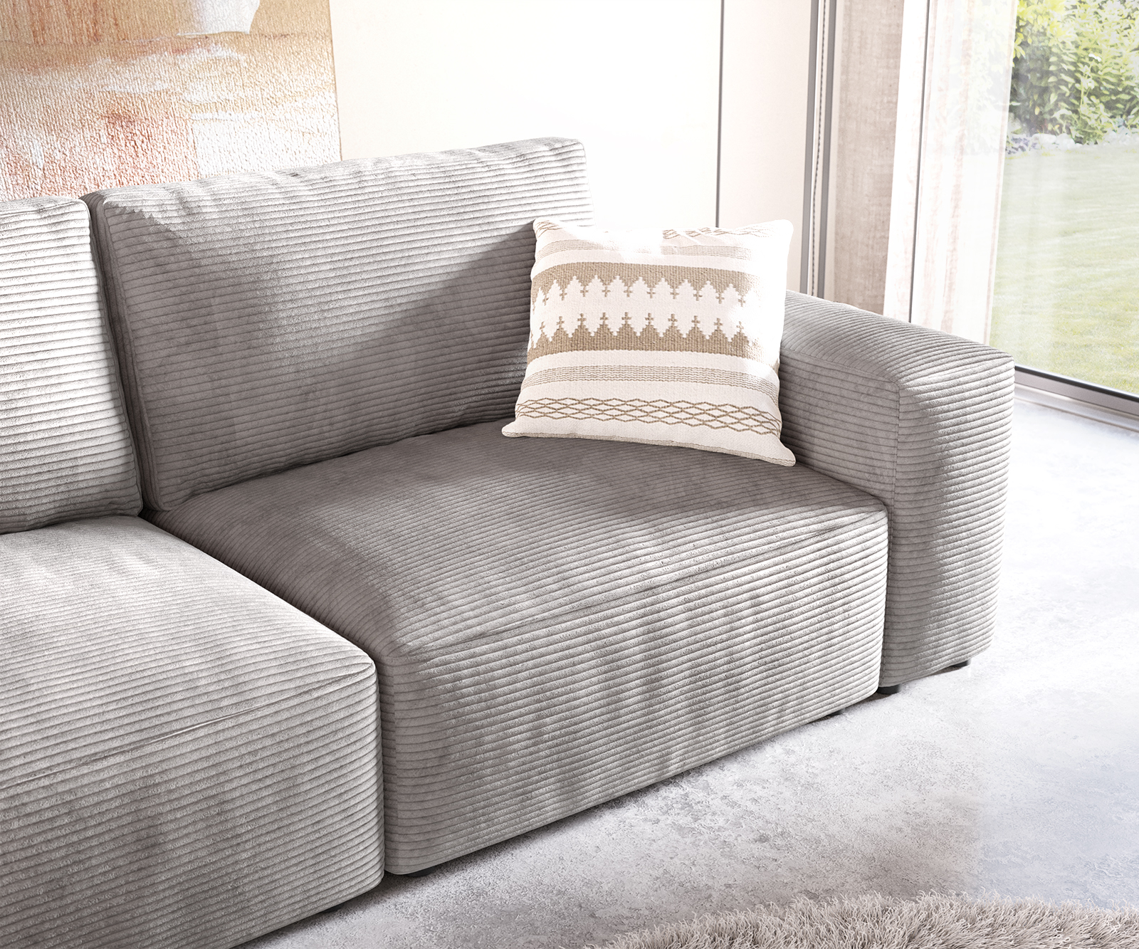 Elegantní stříbrošedá barva dělá z velké pohovky Lanzo zářivý středobod vašeho obývacího pokoje. Vysoce kvalitní manšestrová tkanina je na dotek luxusní a navíc je mimořádně odolná a snadno se čistí. Vysoce kvalitní odpružení a měkké čalounění zajišťují relaxaci a útulnost.
