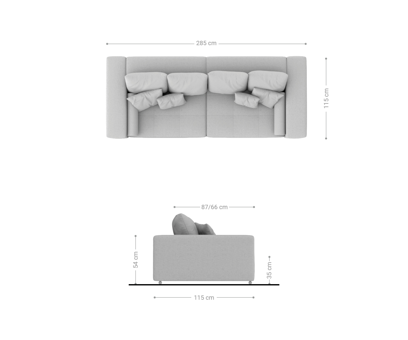 - Přibližné rozměry: Š285 x D115 x V54 cm