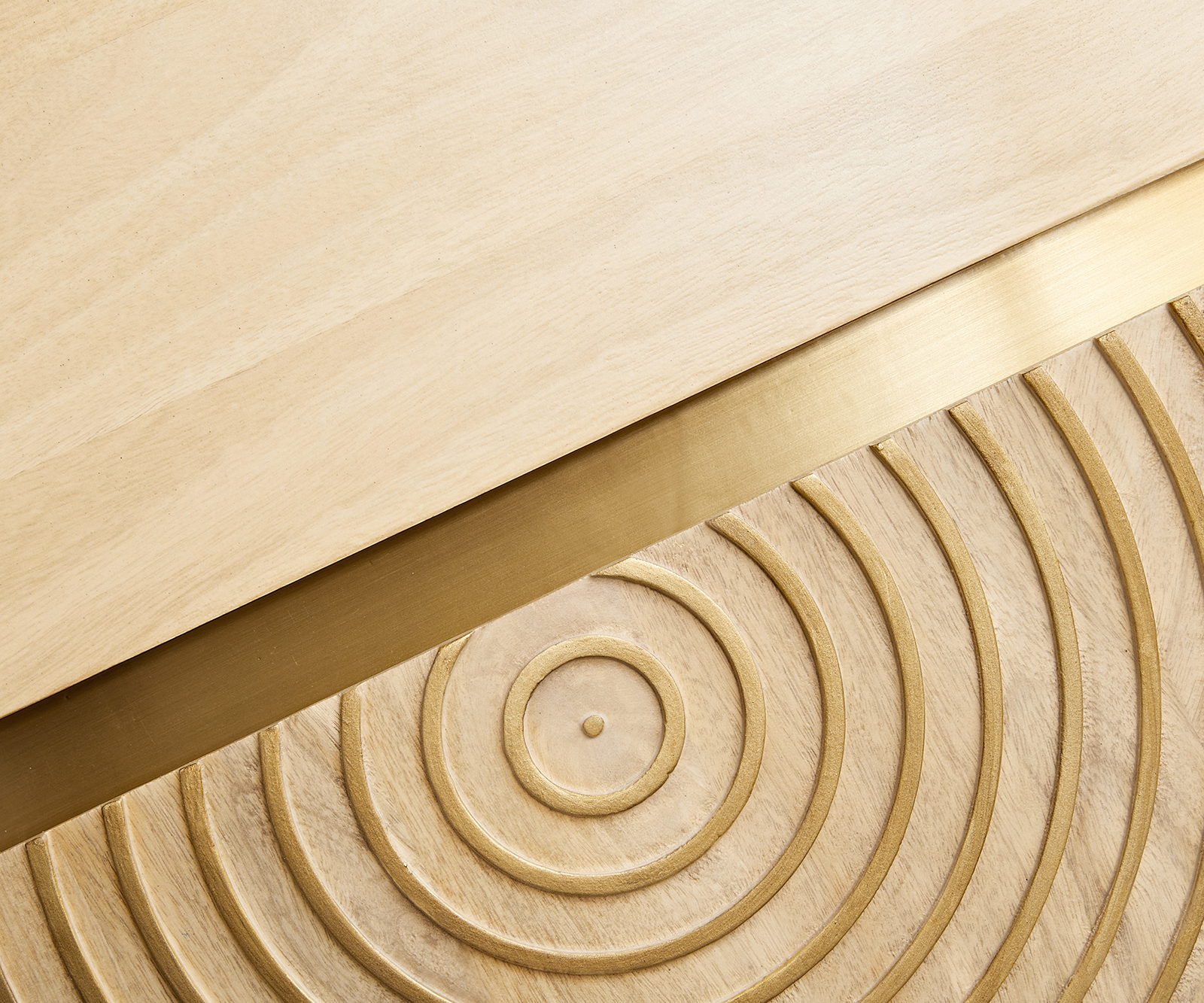 A sötét lábak nemes sheesham fából erőteljes kontrasztot alkotnak a bútorral, és különösen finom, szinte lebegő megjelenést kölcsönöznek neki. A meleg fa tónus és a tiszta formanyelv összhangja révén a design egyszerre könnyed, elegáns és kiváló minőségű hatást kelt.